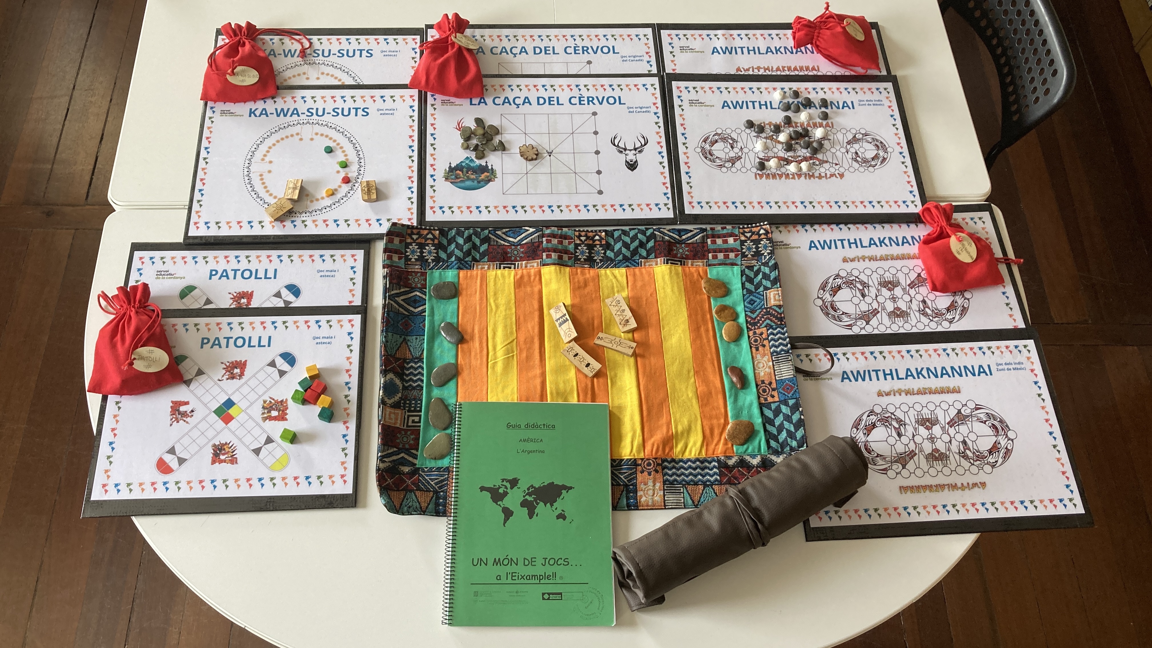 Taulells de jocs, fitxes i normativa dels següents jocs originaris d'Amèrica: Patolli, Ka-Wa-Su-Suts, Awithlaknannai, La caça del cèrvol i Puluc.